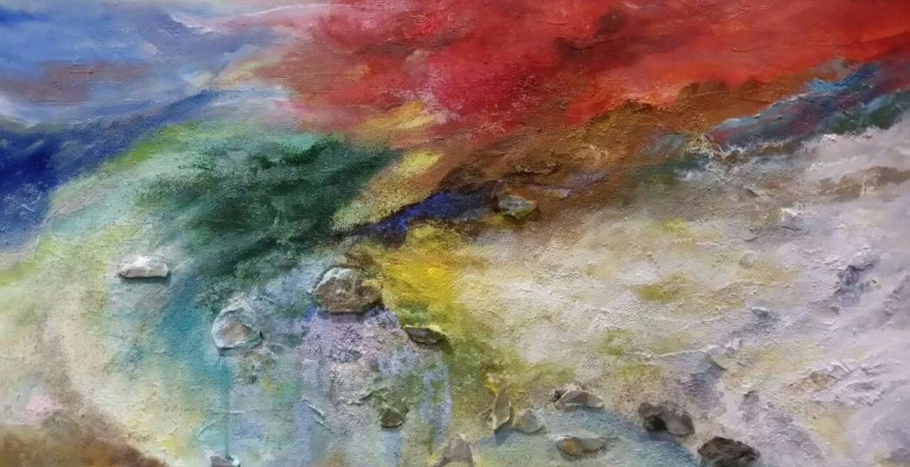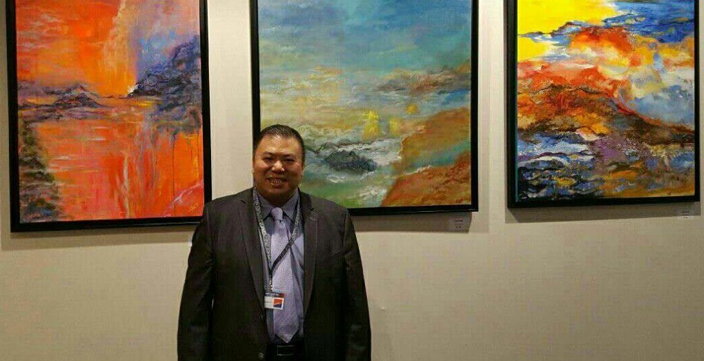 Né en 1965 à Hong Kong (CHINE), Michel Tong se passionne pour le dessin dès son plus jeune âge, après 6 ans, il suivit sa famille arrivée à Paris (FRANCE), la culture Chinoise et la culture européenne ont une grande influence sur sa peinture, voici un tableau de l’artiste, les montagnes bleus contrastent le ciel, la rivière rouge et orange, nous remémorent l’ancienne philosophie chinoise du YIN et du YANG, en même temps , les couleurs se combinent harmonieusement, cette peinture exprime une expérience qui traverse l’espace et le temps, donne des émotions à tous.